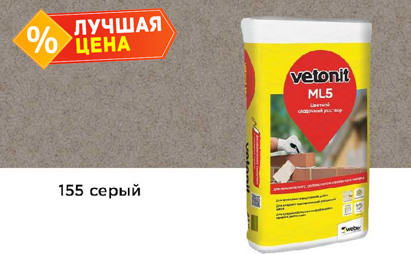 Цветной кладочный раствор weber.vetonit МЛ 5, серый, №155, 25 кг