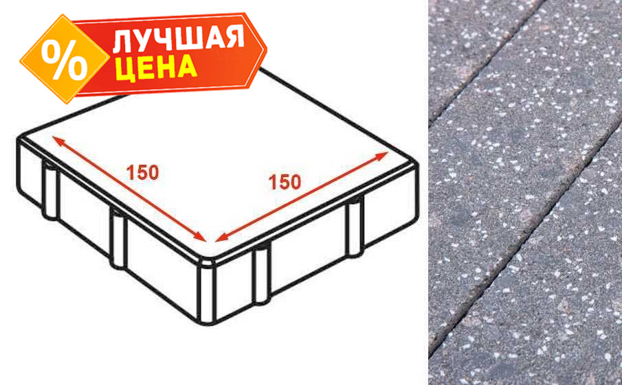 Плита тротуарная Готика Granite FINERRO, квадрат, Ильменит 150х150х80 мм