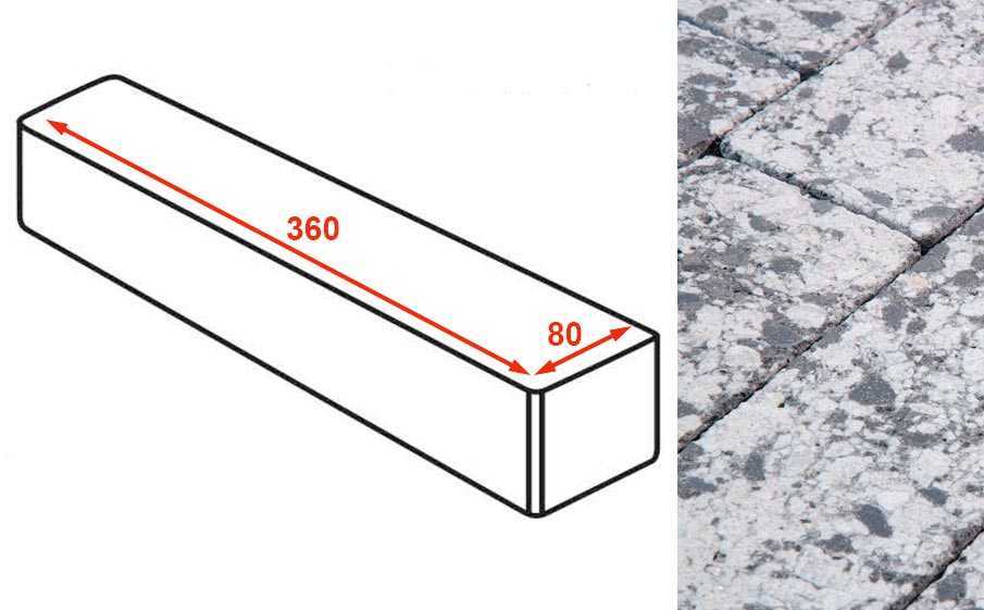 Плитка тротуарная Готика Granite FINERRO, ригель, Диорит 360х80х80 мм