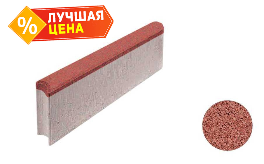 Тротуарный бордюр с шарнирным стыком ВЫБОР БРШ 50.20.8 неполный прокрас, Гранит красный 500х200х80 мм